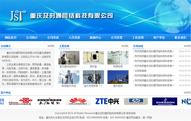 公司主要從事程控交換、寬帶數(shù)通、通信電源、光電傳輸、光纜干線、通信管道、移動通信、鐵塔安裝、網(wǎng)絡(luò)維護、系統(tǒng)集成、土建及配套等業(yè)務(wù)。擁有中國電信、移動、聯(lián)通及政企客戶四大目標市場,并與華為、中興、愛立信、朗訊、思科等國內(nèi)外著名設(shè)備制造商合作。業(yè)務(wù)遍及重慶全境。